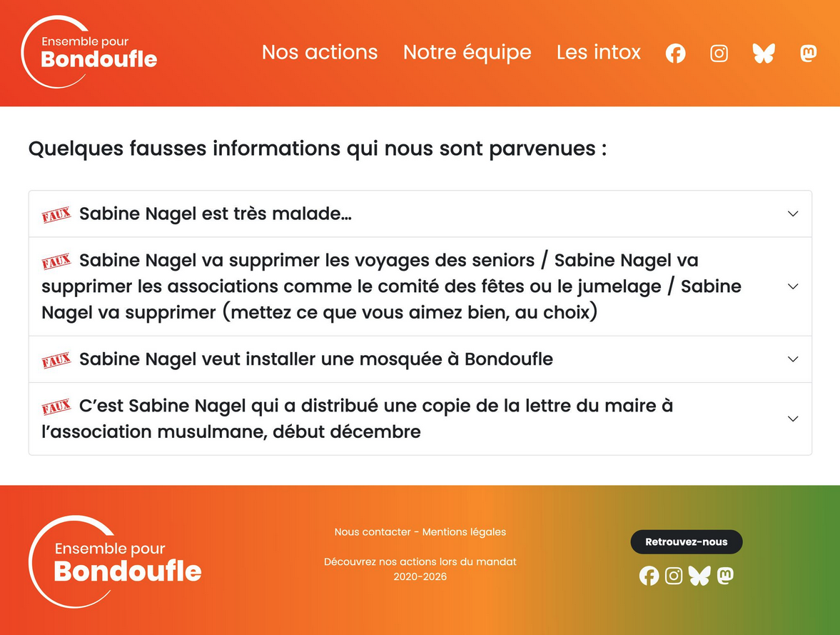 À l'occasion des fêtes, moments de retrouvailles où l'on parle, de fausses informations ont encore circulé. Voici mes réponses, sur notre site de campagne. Pour info, la mosquée, c'est le projet du Maire, et de personne d'autre.