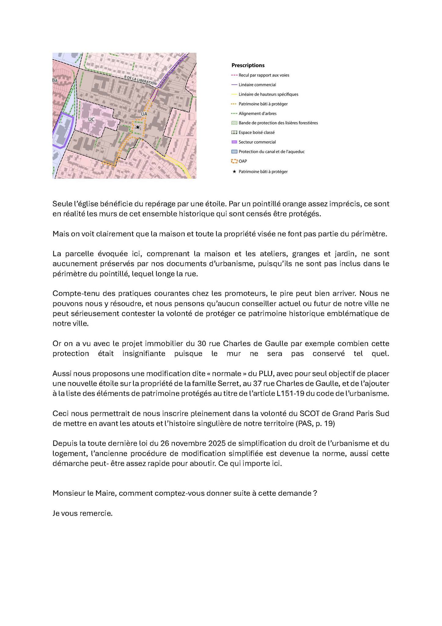 🏡 Dans le doute, j'ai adressé le même sujet en question orale pour demander au maire de lancer rapidement une modification succincte du PLU afin de mieux protéger notre patrimoine du village, plus précisément la maison du forgeron.