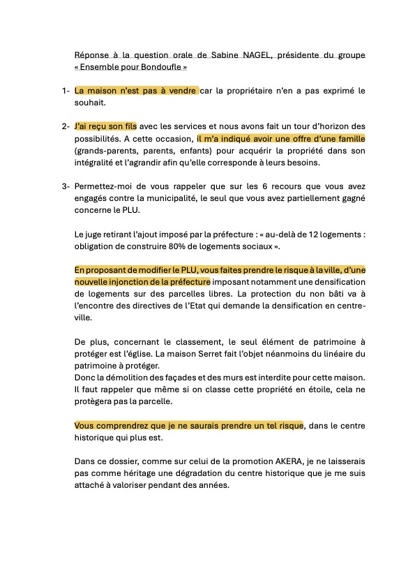 Et aucun de ses adjoints, dont certains en campagne électorale pour prendre sa place, ne l'ont contrarié et ne m'ont soutenue dans ma démarche de préservation de ce trésor Bondouflois.