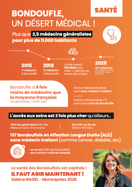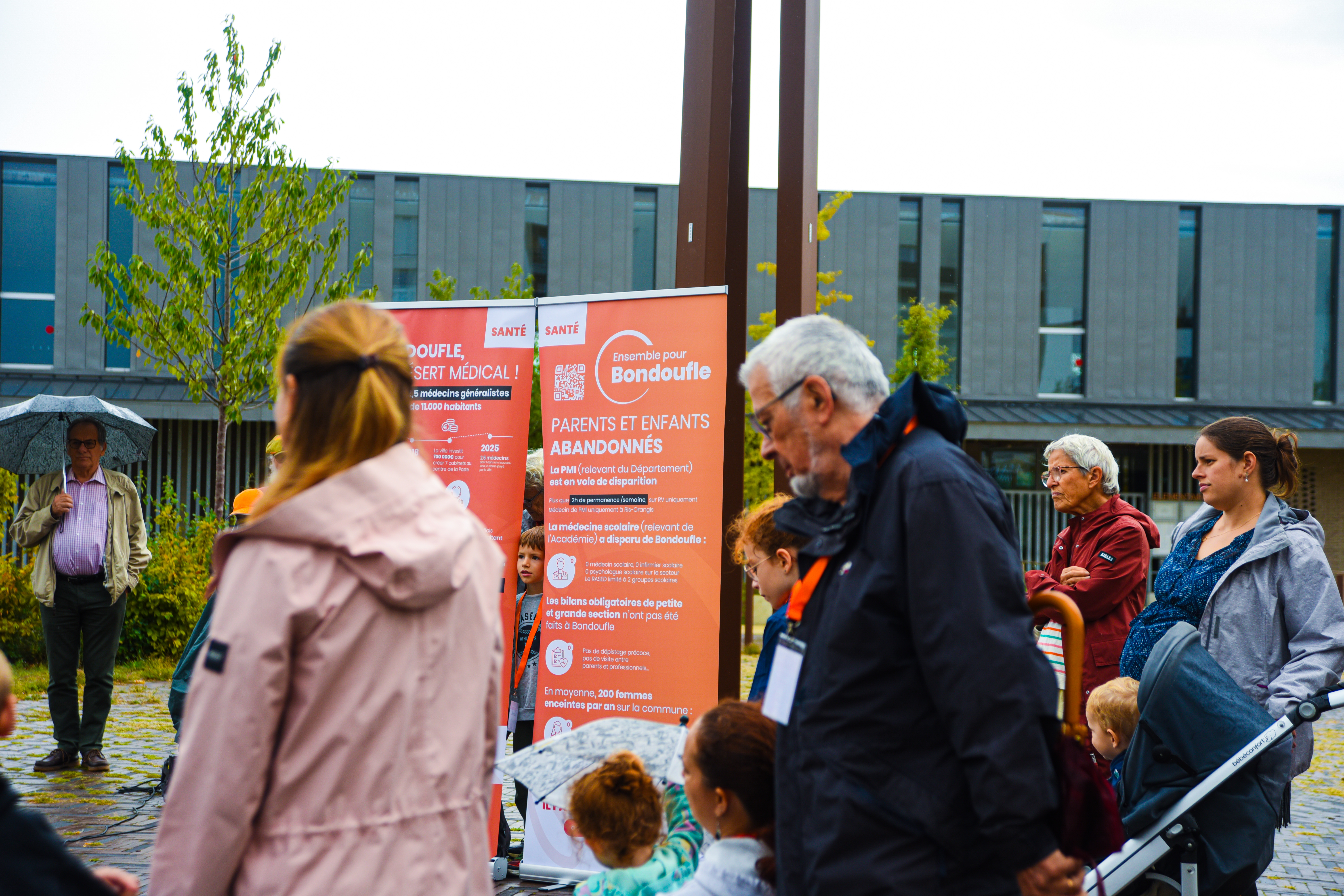 Plusieurs dizaines de Bondouflois.es ont bravé la pluie. Tous subissent les carences qui s'accentuent (de moins en moins de médecins, en dépassement d'honoraires), mais tous sont convaincus que la SANTÉ doit être priorisée et que Sabine NAGEL pourra et saura le faire.