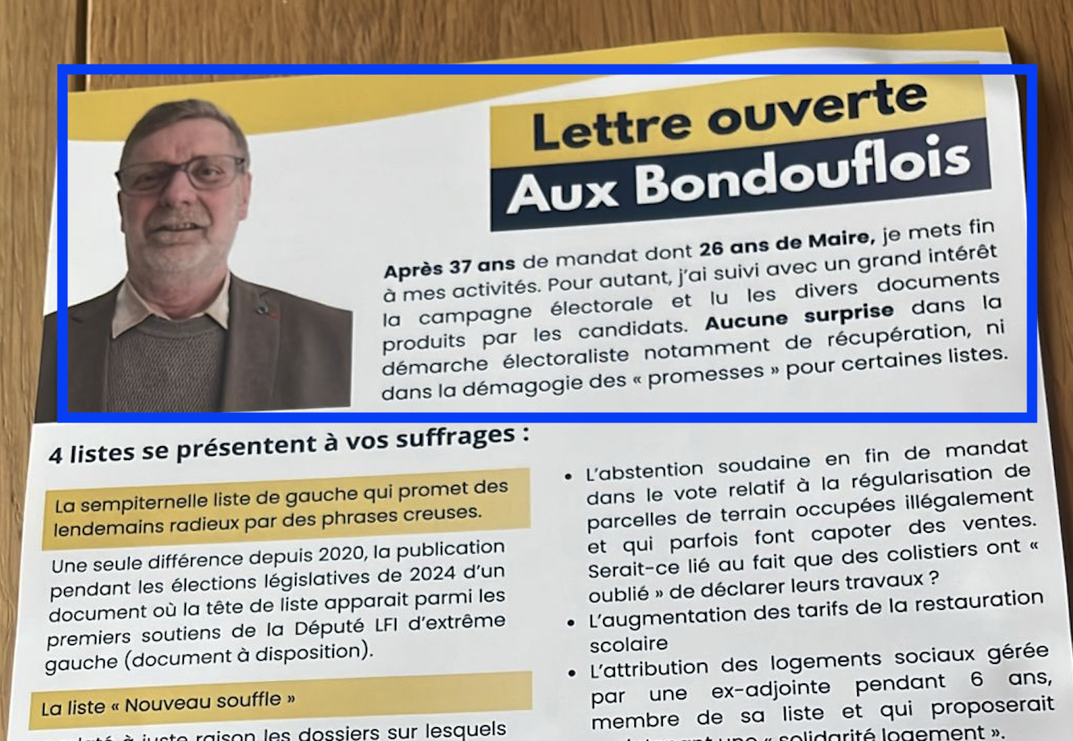 Ce niveau d'argument de la vieille école est dépassé. Depuis des années, au grè des différentes élections, projets et alliances, chacun a fait ses choix. Aujourd'hui, sur la liste de Sabine NAGEL se rassemblent des Bondouflois qui n'ont pas toujours fait les mêmes choix. Et c'est notre richesse. L'ambition qui nous rassemble est de faire mieux pour les Bondouflois, et il y a du travail !